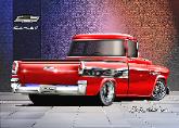 | ITEM TC 57-2-1957 CHEVROLET CUSTOM CAMEO MOONSHINE RED - REAR VIEW |